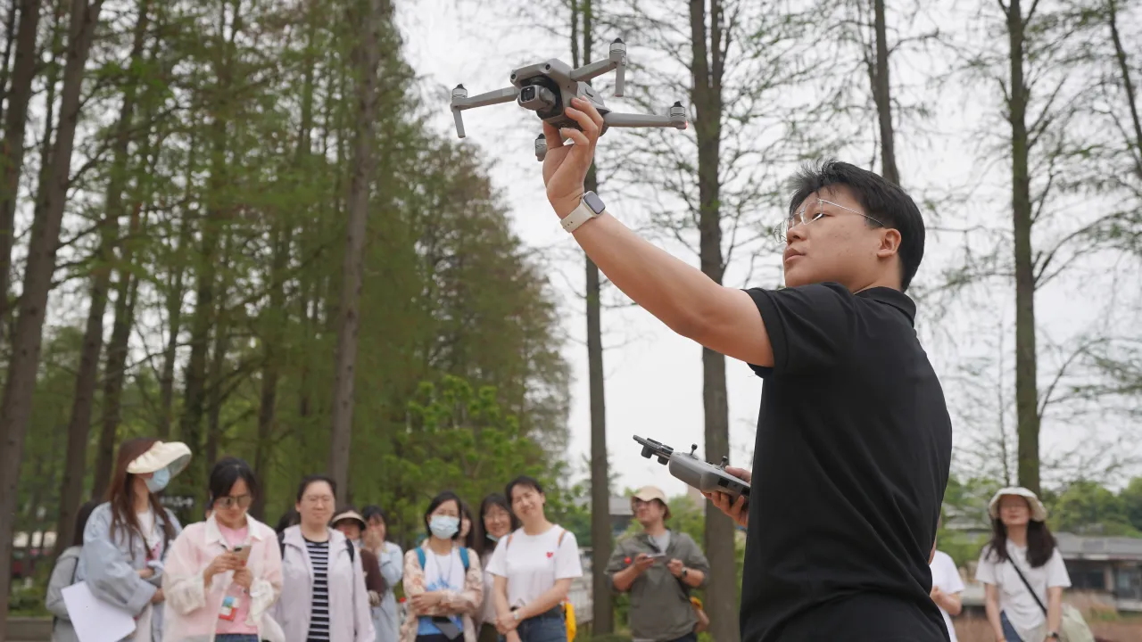 针对参训学员多为首次接触专业设备的特性,他现场演示并带领学员们上手实践。学员们将理论落到实处,现场实现了原地起飞和降落、手接和手抛、远距离物体推拉镜头拍摄等一系列无人机操作。